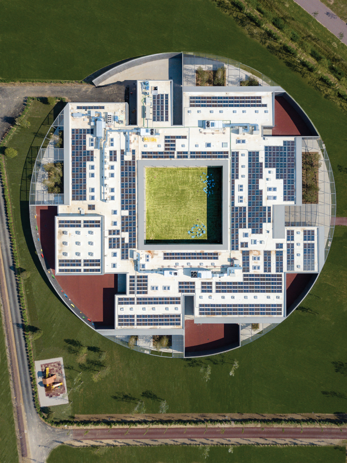 Seine Form imitiert einen natürlichen grünen Hügel und fügt sich perfekt in die Landschaft ein. Die Bildungs- und Sportbereiche der H-Farm sind lichtdurchflutet. Dies ist den außergewöhnlichen Flachdachfenstern von FAKRO zu verdanken, von denen mehr als 170 Stück dort ihren Platz gefunden haben. Das Sonnenlicht dringt nahezu überall in alle Innenräume ein und ermöglicht eine angenehme und effektive Nutzung über viele Stunden täglich, auch im Herbst und Winter. Darüber hinaus sorgt die Ausstattung der Fenster mit automatischer Steuerung für eine optimale Tageslichtnutzung zu jeder Jahreszeit.